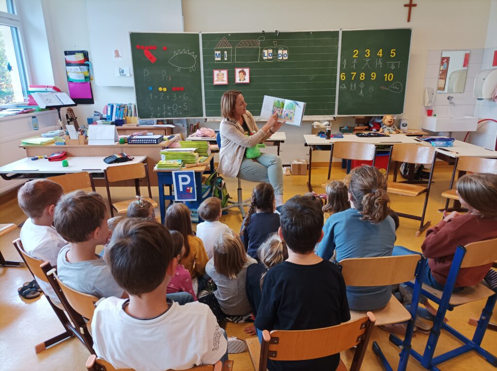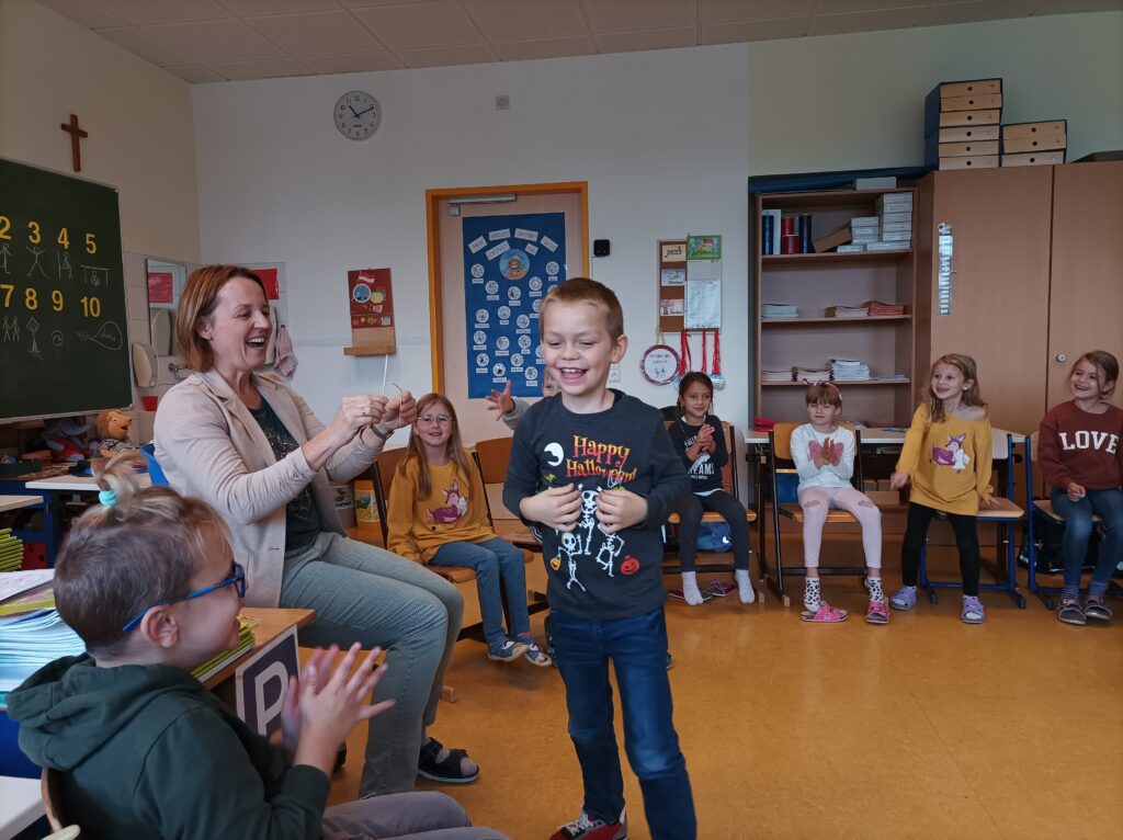 Das kleine WIR besuchte die Kinder der ersten Klassen. Das WIR-Gefühl ist für Kinder und Erwachsene sehr wichtig. Es unterstützt unsere Kinder beim Lösen von Konflikten und zeigt uns, dass wir gemeinsam alles schaffen können.