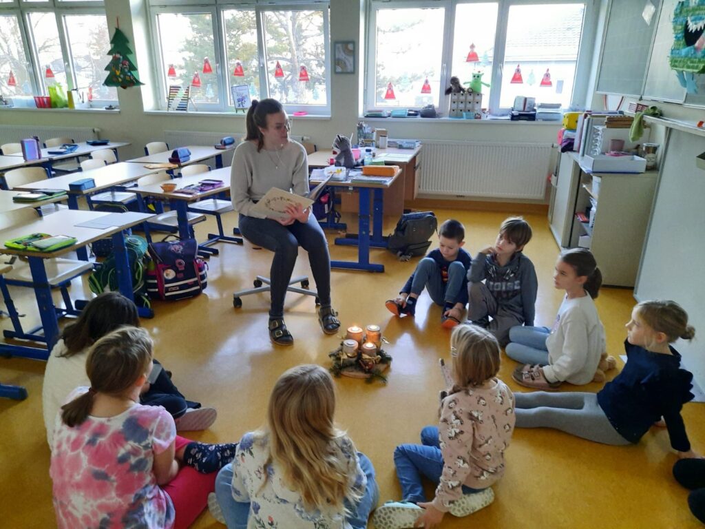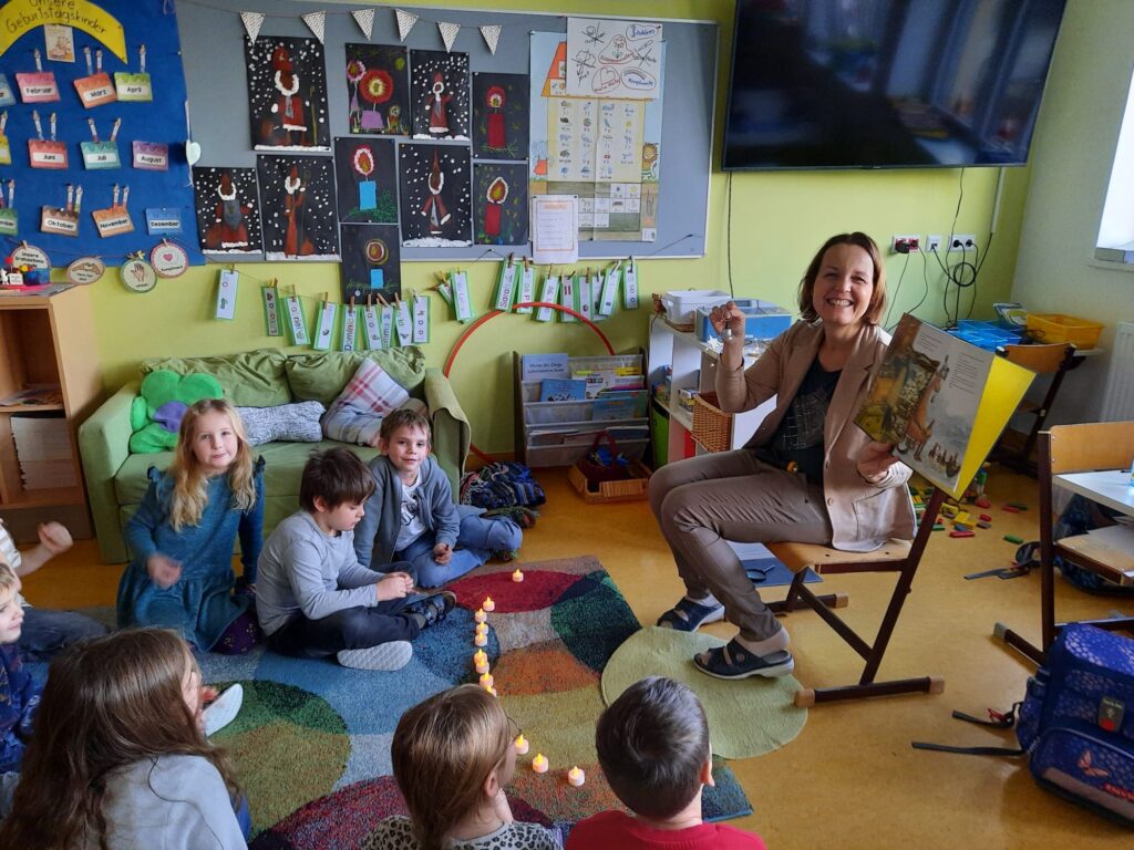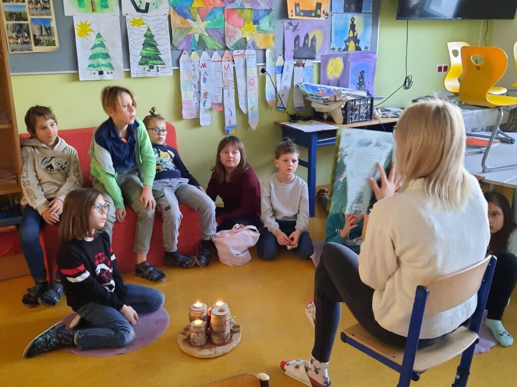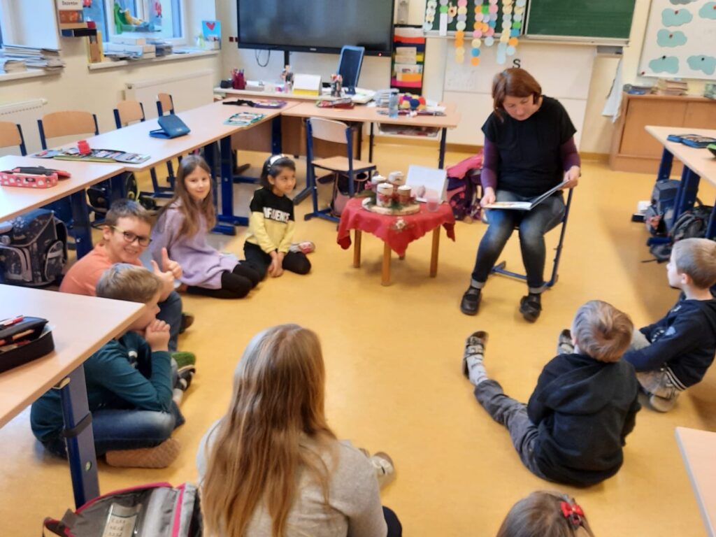 Kurz vor den Ferien fand in der Schule klassenübergreifend ein “Weihnachtslesekino” statt. Alle Pädagoginnen lasen ein Bilderbuch vor. Sogar unser Herr Bürgermeister nahm sich die Zeit und las mit Freude. Die Kinder konnten davor ein Buch auswählen und sich “Kinokarten” holen.