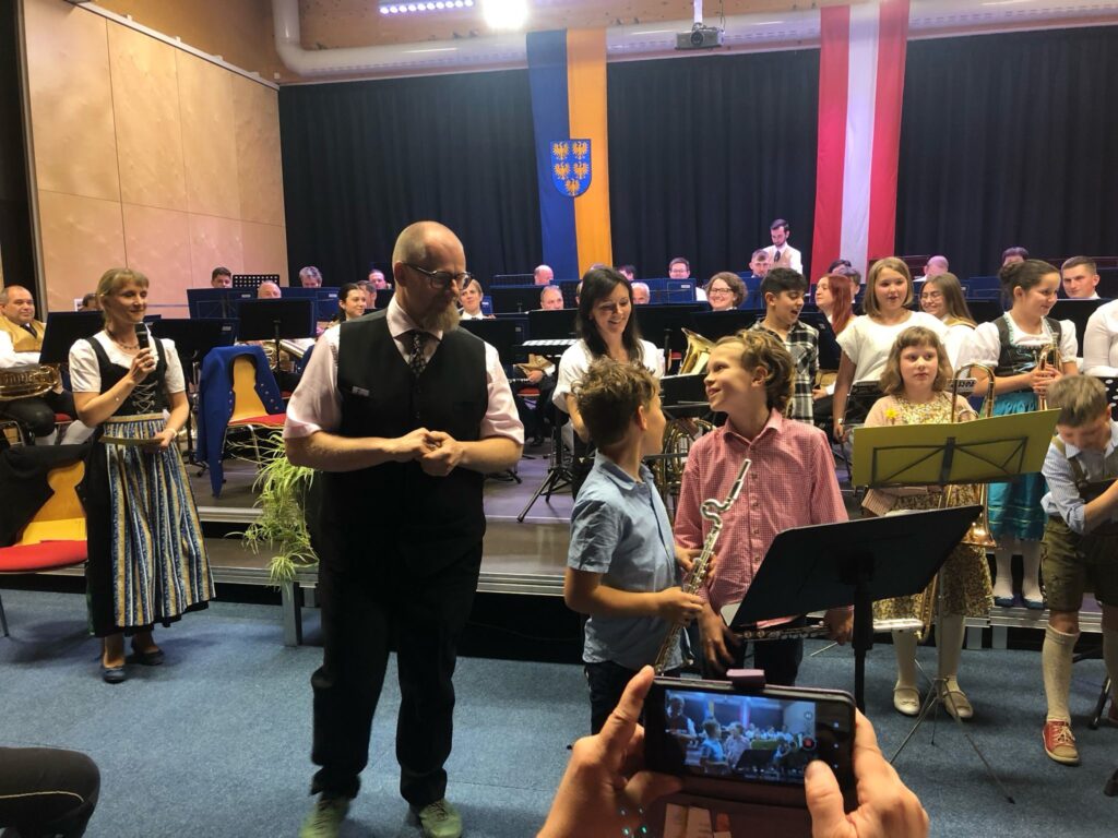 Tosenden Applaus erntete unsere Bläserklasse beim Frühlingskonzert der Musikkapelle Neumarkt. Der Festsaal war voll und die Stimmung grandios. Die jungen MusikerInnen begeisterten mit ihrem Können das Publikum so sehr, dass es laute Zugaberufe regnete.