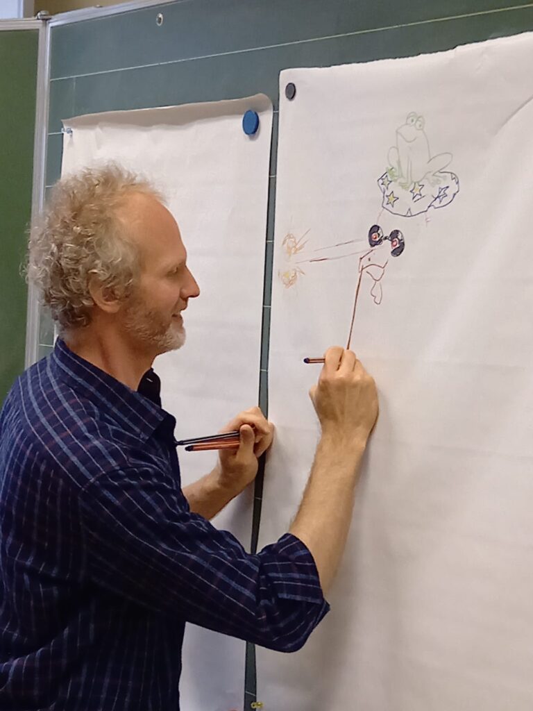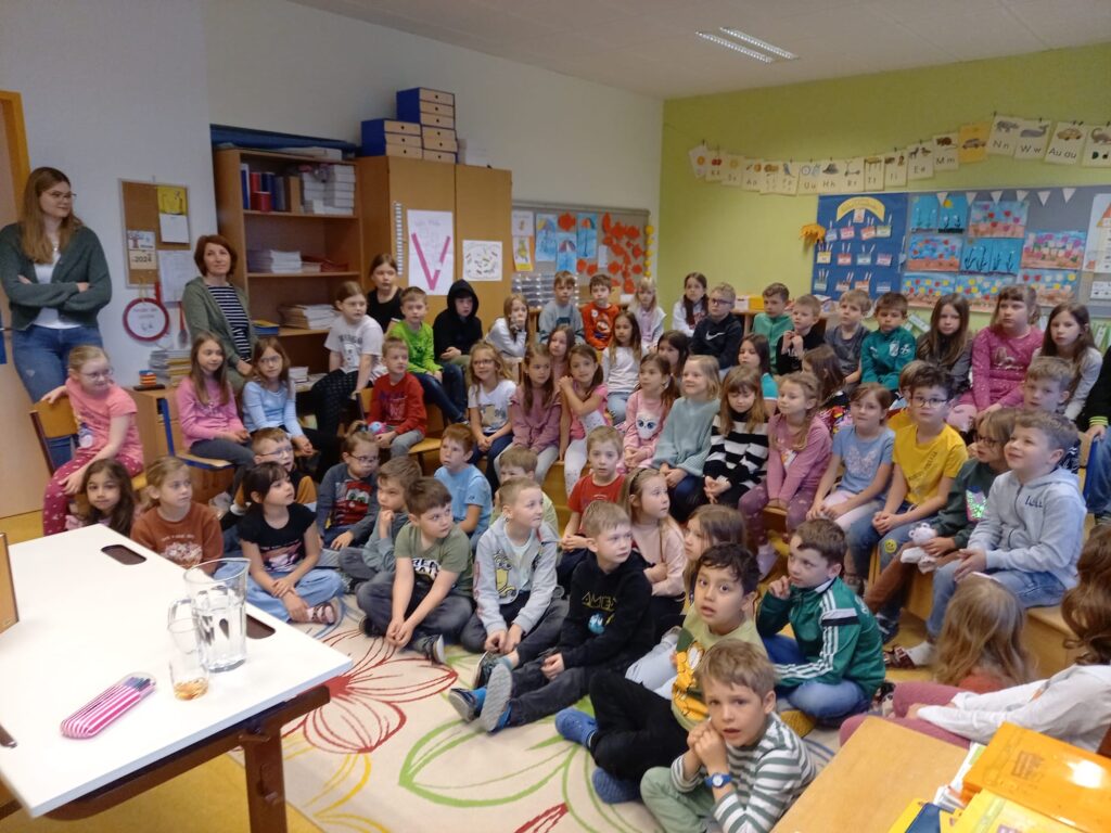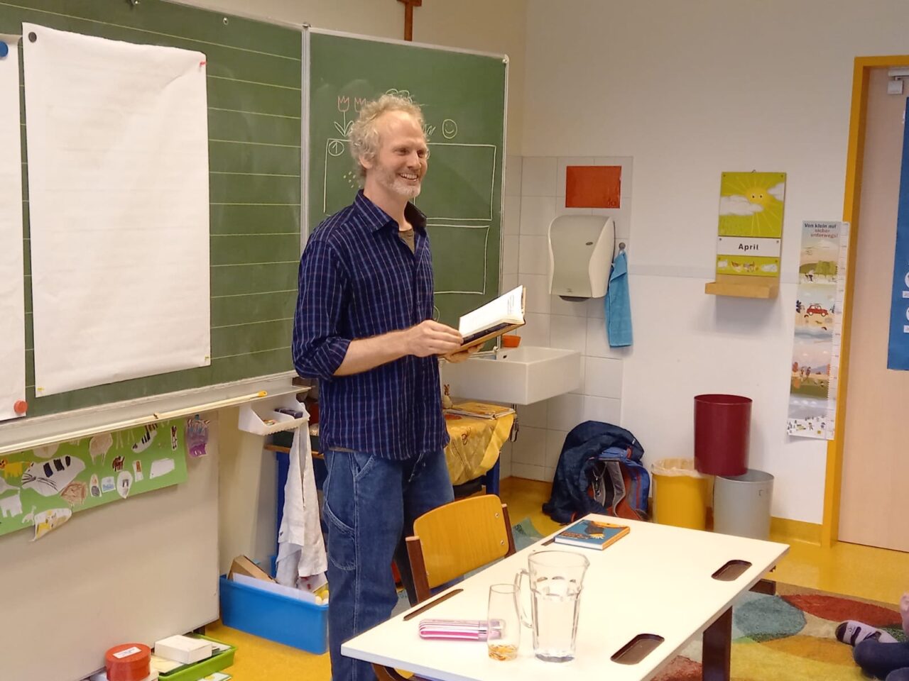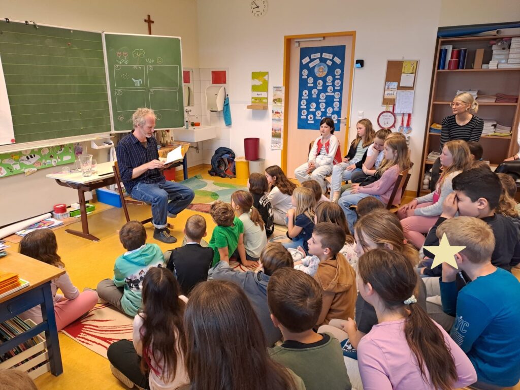 Michael Roher, ein sympathischer Kinderbuchautor aus Baden besuchte uns und las aus seinen Büchern vor. Die Kinder und Lehrerinnen amüsierten sich dabei köstlich über seine erfrischenden Geschichten. Herr Roher begeisterte uns mit Witz und Humor und machte Lust auf mehr. Dabei durften die Kinder ihre eigenen Ideen einbringen und die Lesung mitgestalten.