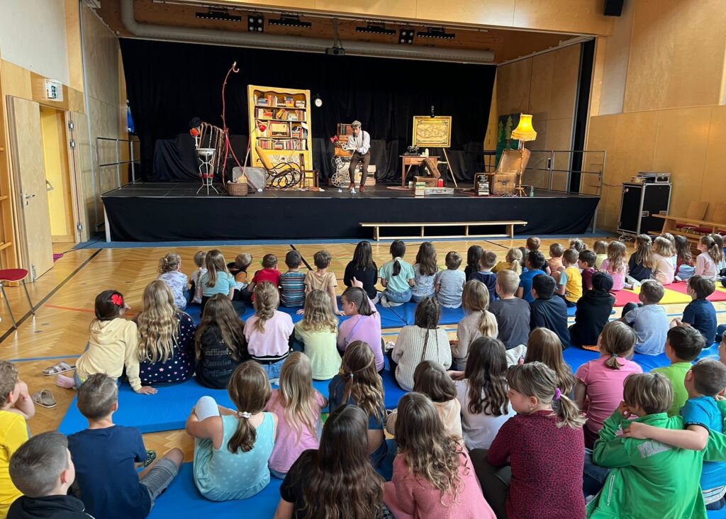Unser Turnsaal wurde unlängst für zwei Stunden zu einer Zirkustheaterbühne. “Der Geschichtenfänger” verzauberte die Kinder mit tollen kleinen Kunststücken und versetzte uns alle ins Staunen.
