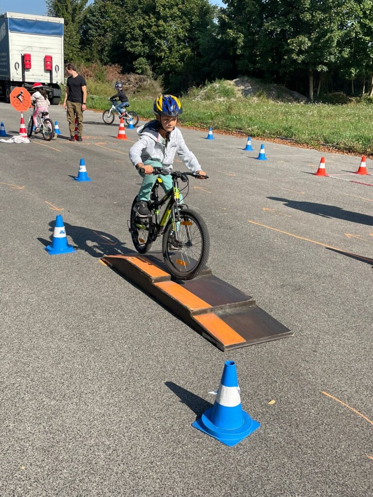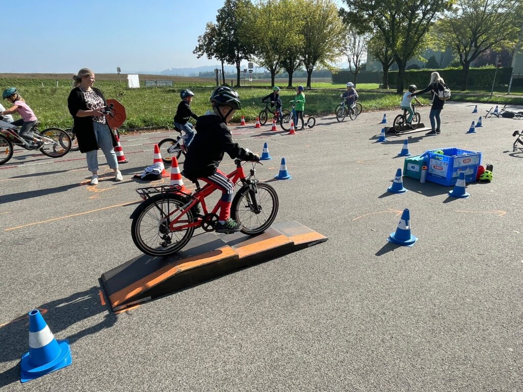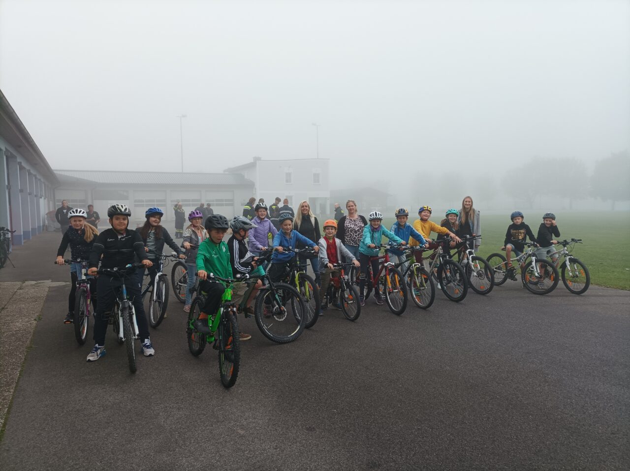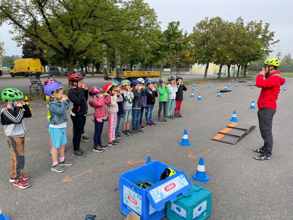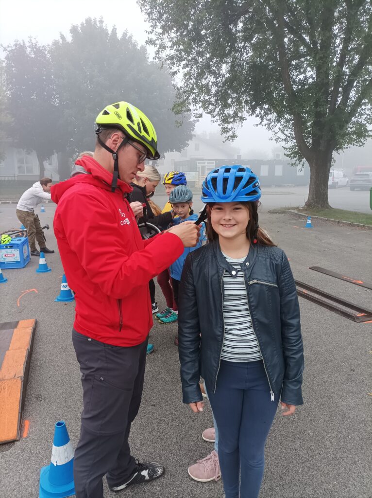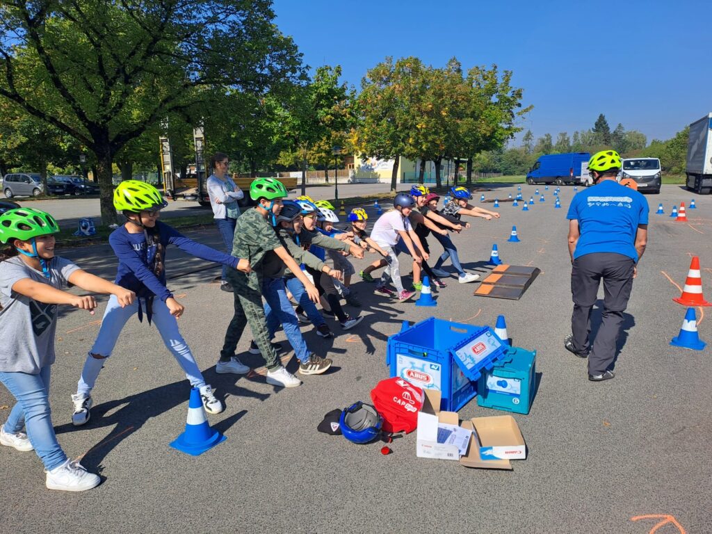Ein Helmcheck durfte natürlich auch nicht fehlen. Danke an die Feuerwehr und an alle Eltern für die Unterstützung und den reibungslosen Transport der Räder!